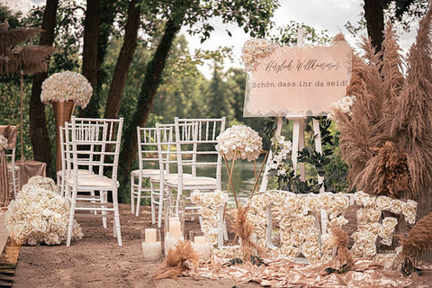 Jedes Detail wird nach Ihren persönlichen Wünschen gestaltet und ergänzt das Ambiente Ihrer Trauung im Freien perfekt